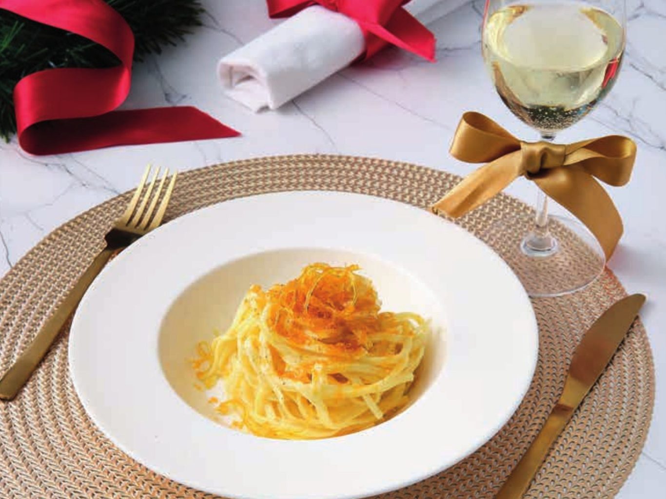 Tagliolini con burro, bottarga, limone candito e pepe bianco.